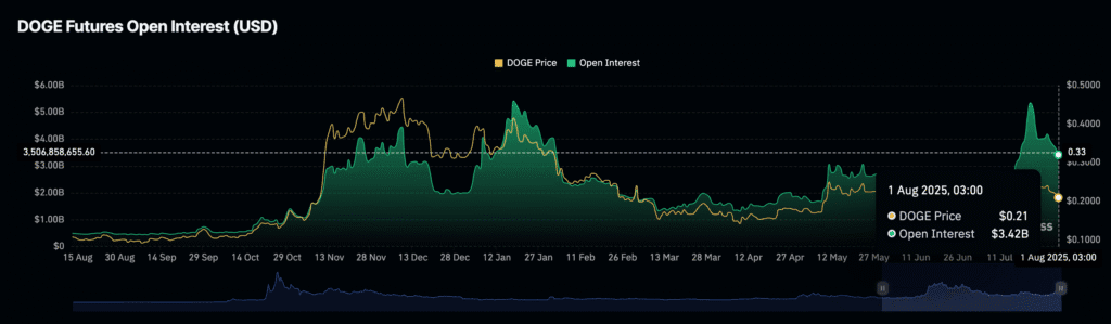 Dogecoin and Stellar (XLM) continued their multi-day declines amid shrinking open interest and funding rates.