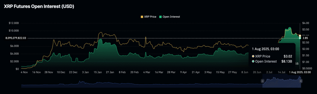 XRP briefly dipped under $3.00 but bounced back, supported by short-squeeze potential and large liquidations.