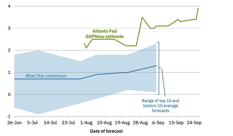 The Atlanta Fed’s GDPNow model edged down to 3.8% growth for Q3, from 3.9% previously.