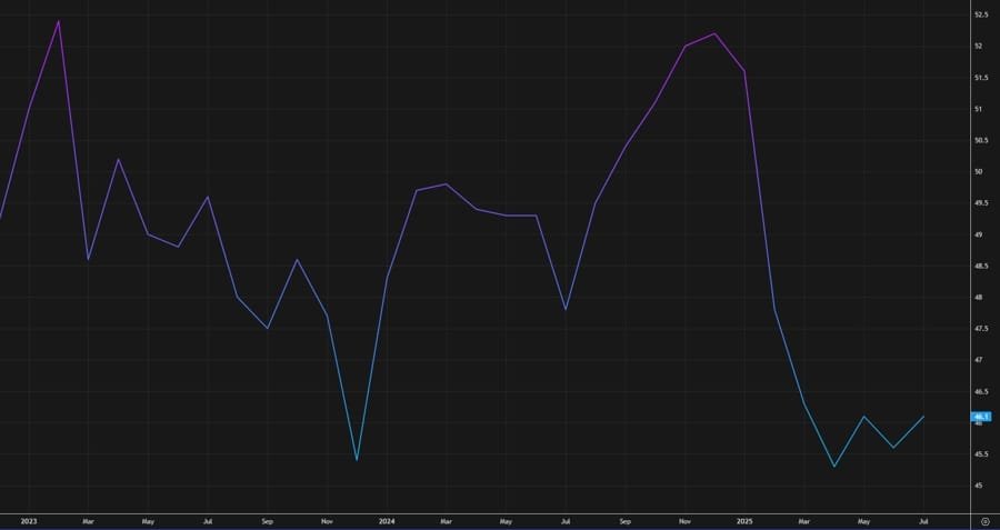 - July’s final figure was 49.8.
