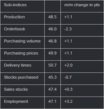 “However, a rise in the rate of increase of both input costs and selling prices could become a concern if this intensification of inflationary pressures is sustained in the coming months, especially as the combination of higher price pressures alongside accelerating economic growth and rising employment is not typically conducive to cutting interest rates.”
