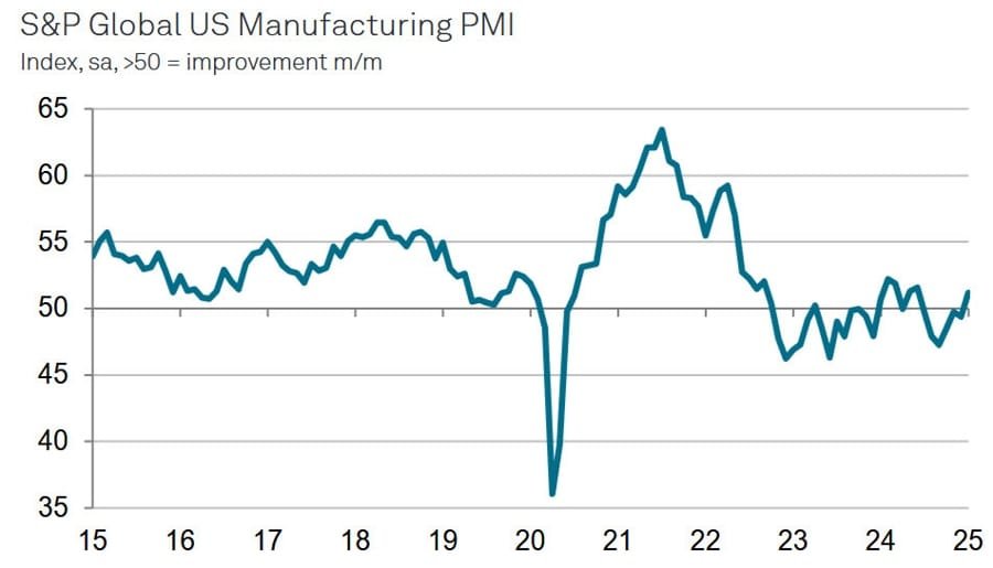 “Manufacturers report that political uncertainty has cleared and the pro-business approach from the new administration has brightened their prospects. Production has already improved after falling throughout much of the last half of 2024, amid rising domestic sales. Factories have also stepped up their hiring to meet planned growth of production capacity.