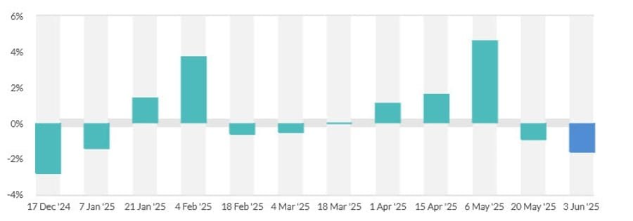 Monday saw $268 million flow out of Bitcoin spot ETFs, a notable break from the 10-day inflow streak that had fueled bullish sentiment through May. The outflows signal growing investor hesitancy amid a volatile trade environment and elevated uncertainty around U.S. tariffs.