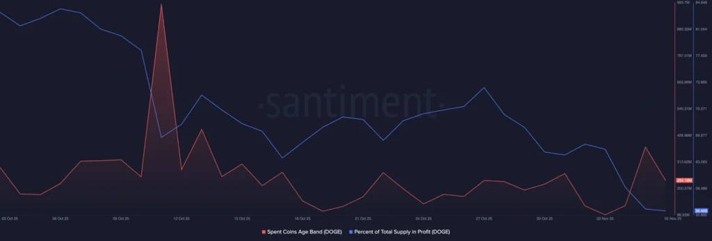 • Supply in profit fell to 56.46%, down from 83.81% a month ago (Santiment)