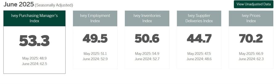 Canada’s Ivey PMI Climbs Back Above 50 in June