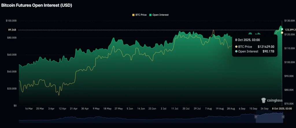 Futures open interest in Bitcoin declined to $90.17 billion from $94.12 billion, reflecting a cooling in leveraged long positions. A drop in open interest often signals fading speculative enthusiasm or profit-taking among traders.
