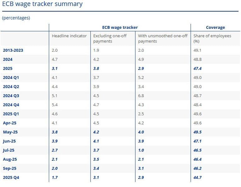 - ECB Wage Tracker Falls: Negotiated wage growth slowed to 3.1% in 2025, down from 4.7% in 2024. This supports the ECB’s easing narrative.