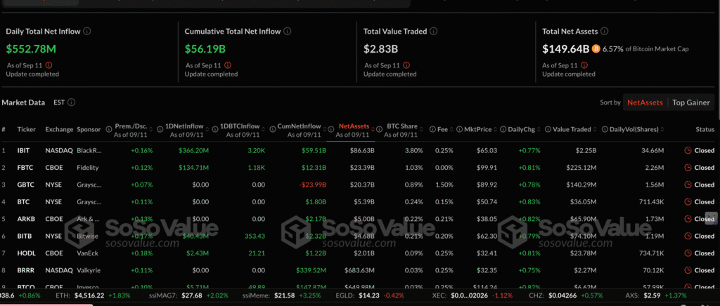 • BTC ETFs saw $553M inflows Thursday, bringing YTD inflows to $1.7B (SoSoValue).