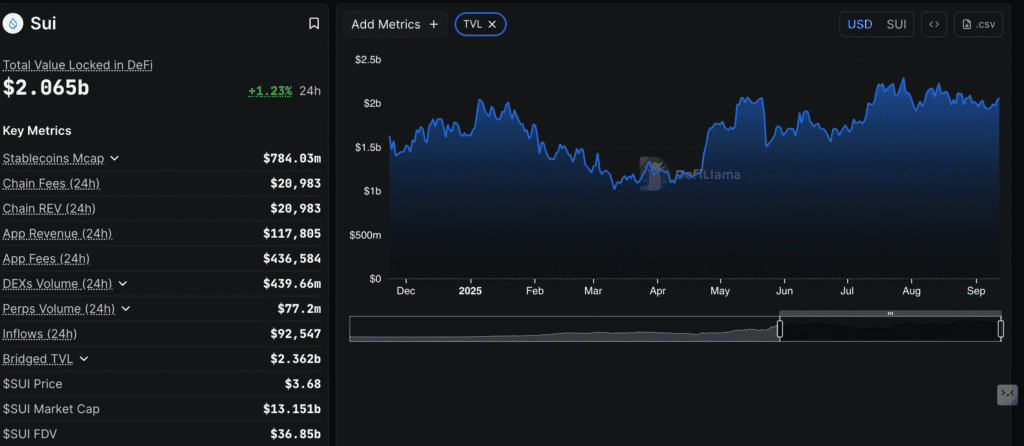 SUI Targets 22% Rally as DeFi TVL Tops $2B
