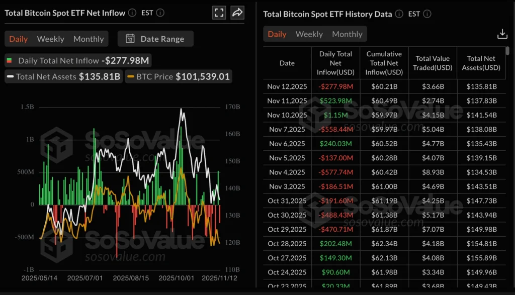 ETF data continue to act as a gauge of institutional sentiment. Persistent outflows signal ongoing caution despite the market’s technical rebound.