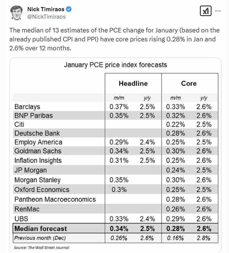 - The Atlanta Fed lowered its Q1 GDP growth estimate from 2.9% to 2.3%.