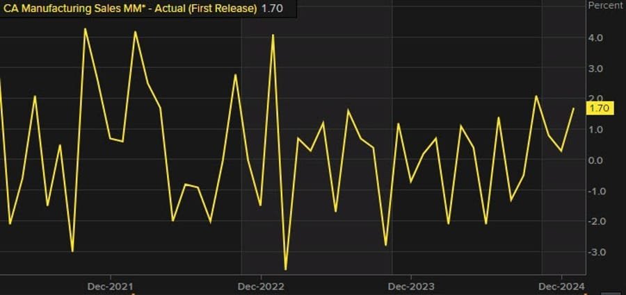 Canada’s Manufacturing Sales Rise 1.7% in January, Led by Auto Sector