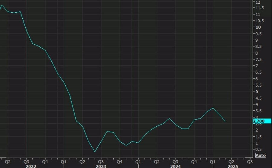 - Ex food, energy, and trade: +2.9% y/y, down from 3.4%