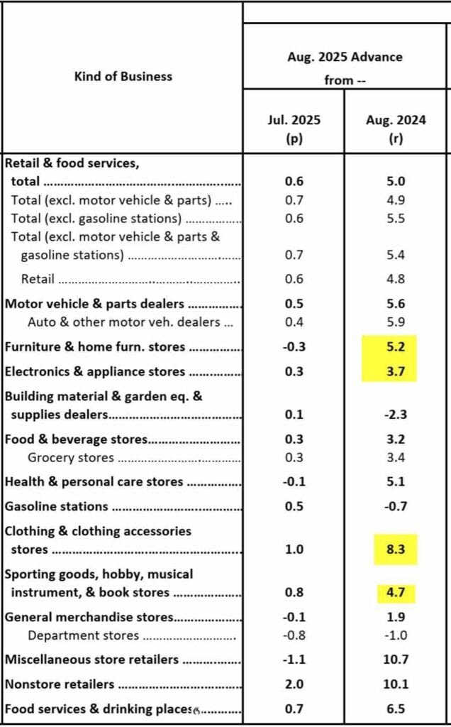 Key driver: higher prices on imported goods boosted sales. Furniture (+5.2%), electronics/appliances (+3.7%), and clothing (+8.3%) all posted gains.