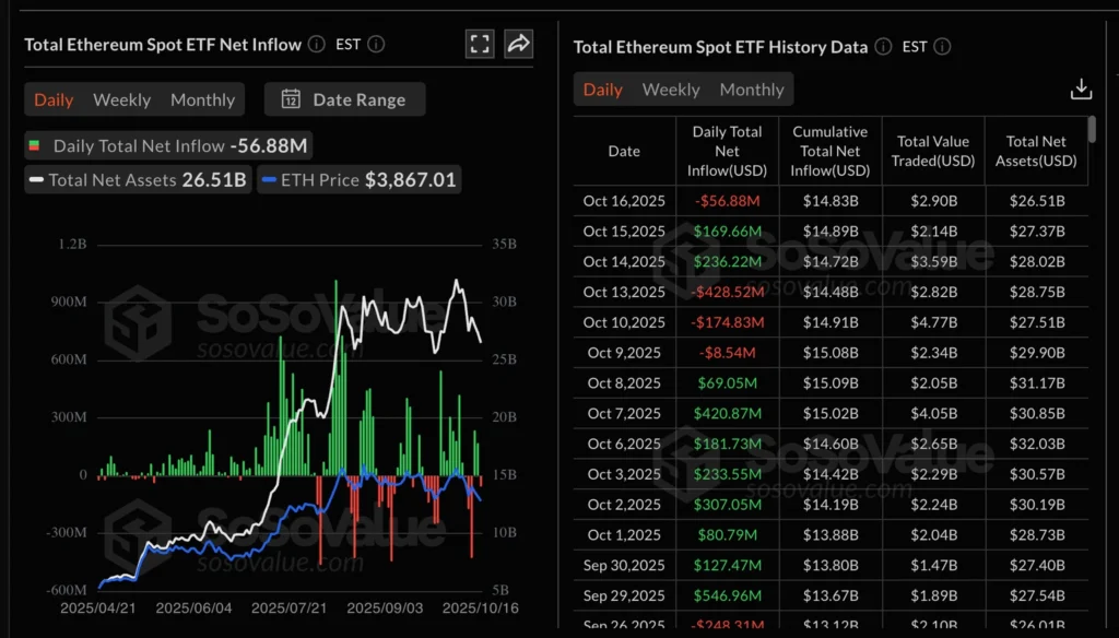 Ethereum ETFs also saw $57 million in redemptions, with only BlackRock’s ETHA posting inflows. Analysts said sustained ETF outflows and leveraged deleveraging “leave the market vulnerable to further downside.”