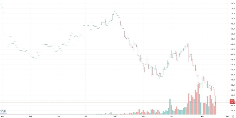 Technical readings remain soft. The RSI continues to trend lower and the MACD sits on a sell signal, reinforcing the view that bearish sentiment is firmly in place.