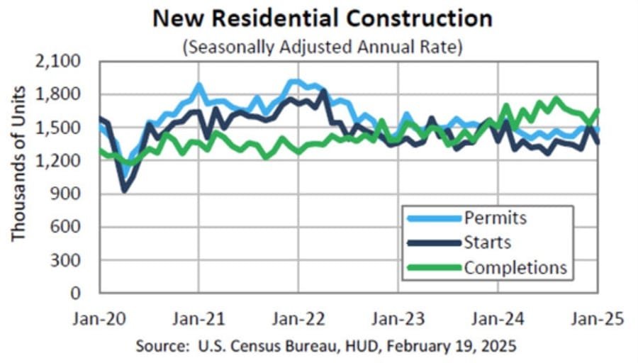 US January Housing Starts Fall 9.8%, Permits Hold Steady
