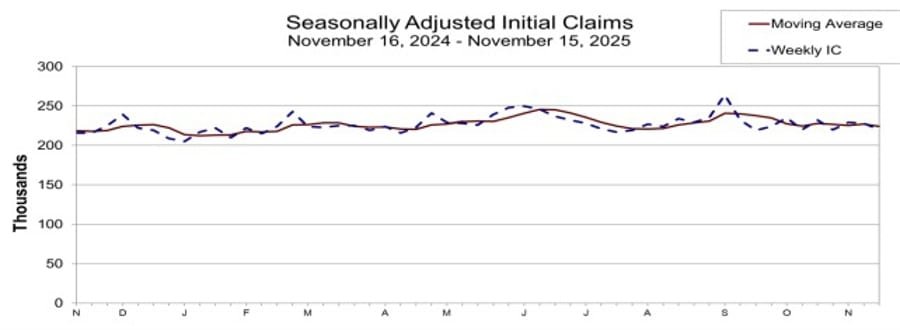Initial jobless claims came in at 220K versus the 230K estimate. The four week moving average declined to 224.25K. Continuing claims ticked higher to 1.974 million.