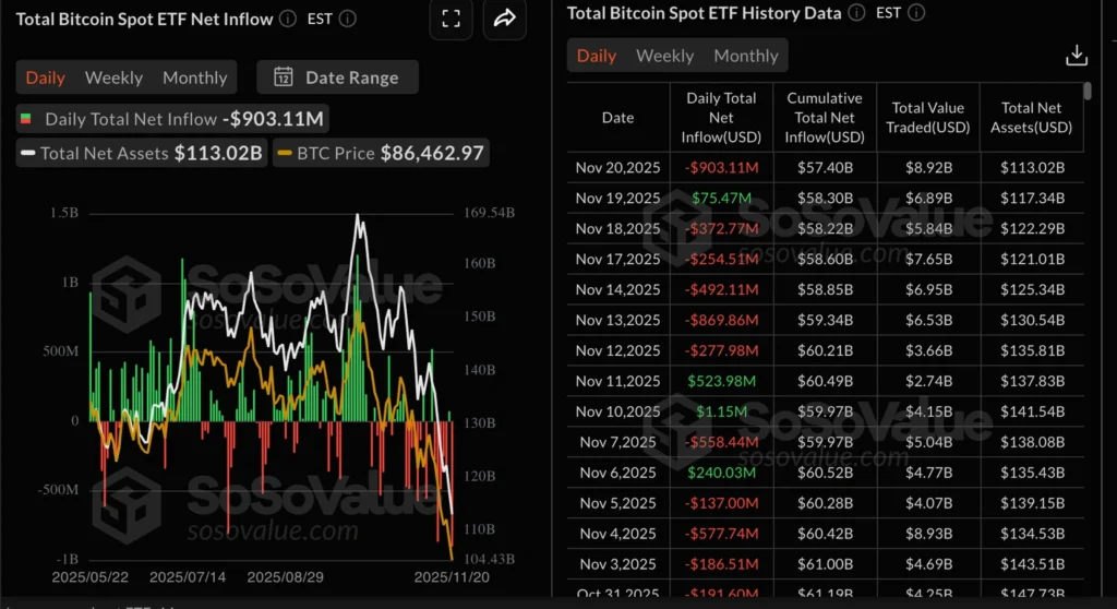 Bitcoin spot ETFs saw 903 million dollars in outflows on Thursday, the largest since mid November.