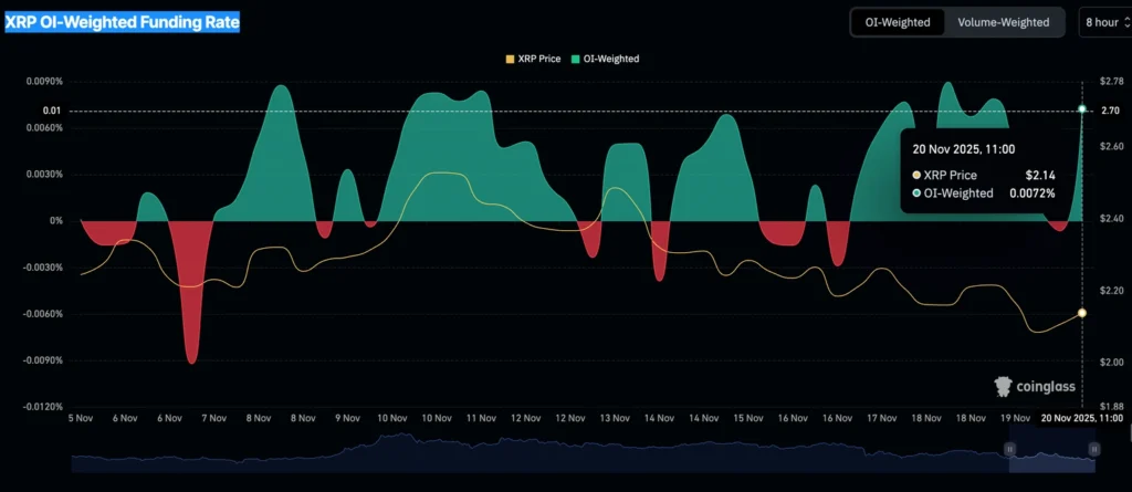 The drop signals a sharp contraction in retail participation. Funding rates turned positive, suggesting some traders are attempting to buy the dip, but demand must rise for any near term recovery to hold.