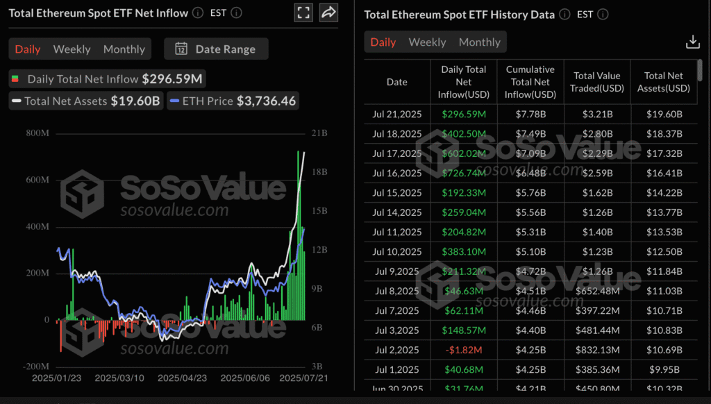 - Total ETH ETF assets: $19.60 billion