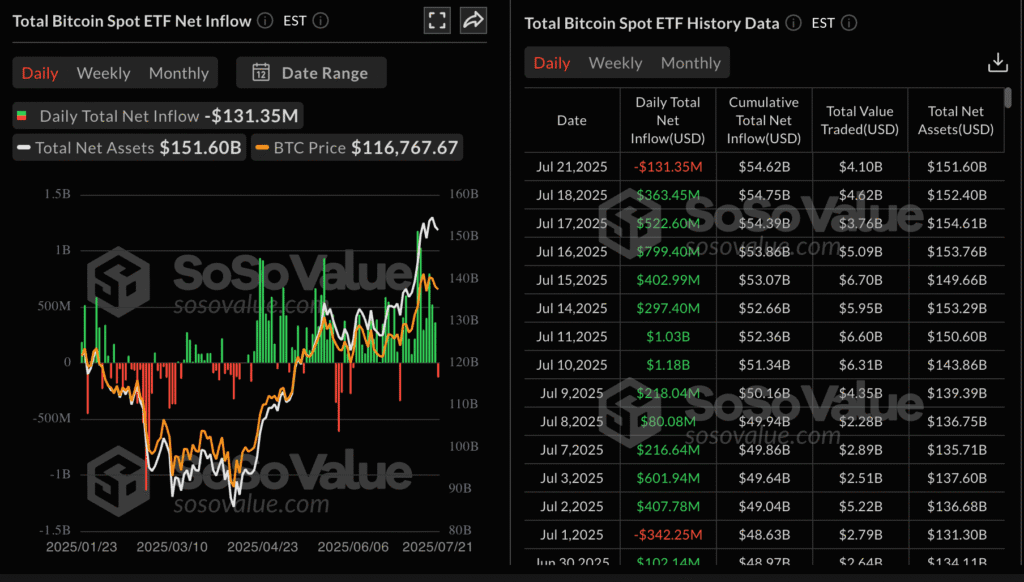 - Bitcoin ETFs recorded $131 million in outflows, breaking their 12-day streak