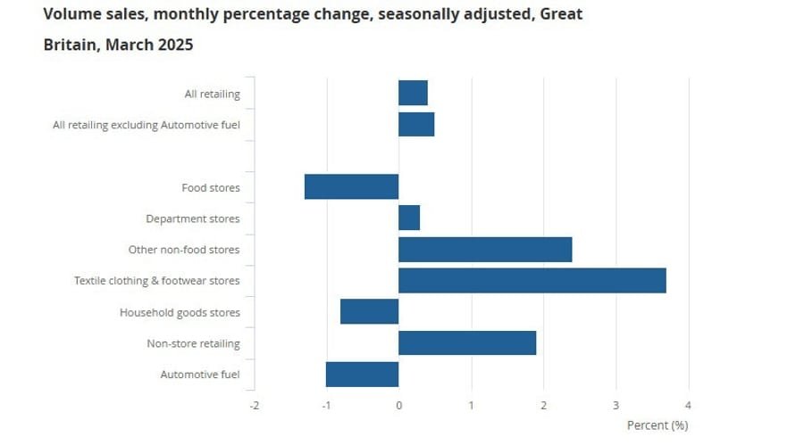 - Supermarkets and other grocery retailers (excluding convenience stores) increased +3.7%, rebounding from a -3.2% decline in January.