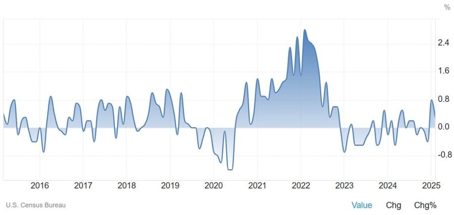 While still expanding, the slower inventory growth could indicate businesses are managing stock levels cautiously amid economic uncertainty.
