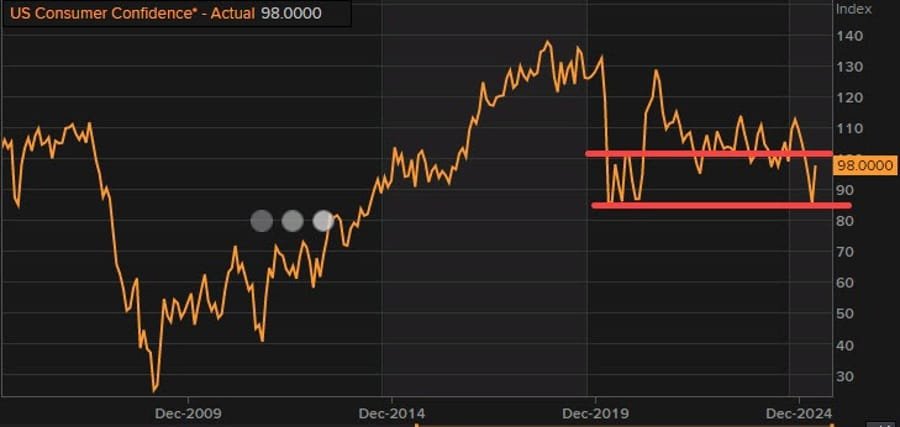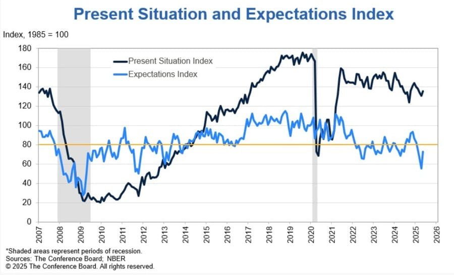 The rise in confidence may reflect easing concerns about tariffs or fiscal uncertainty, potentially signaling stronger consumer spending in the near term. Still, the Expectations Index remains cautious, highlighting lingering worries about economic headwinds.