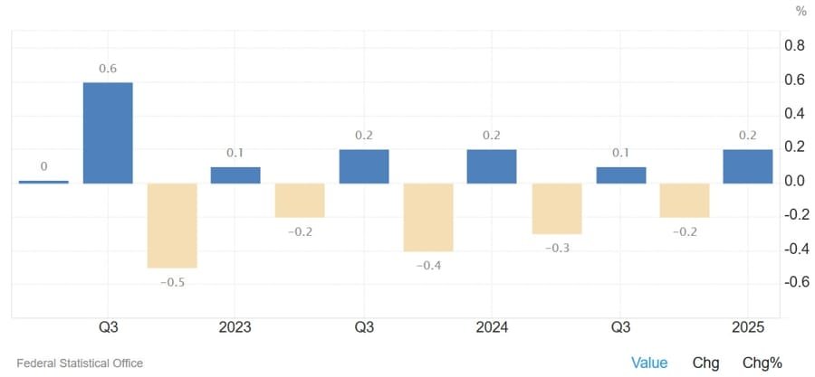 German Data Mixed: Q1 GDP grew +0.2%, recovering from contraction, but unemployment ticked up slightly. CPI came in hot at +2.2% y/y, with core CPI jumping to +2.9%.