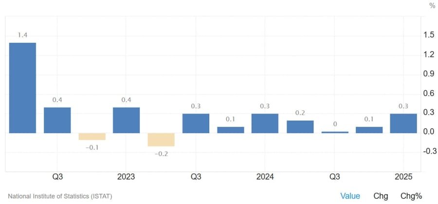 The US economy contracted in Q1 2025 for the first time in three years, posting -0.3% growth against +0.3% expectations.