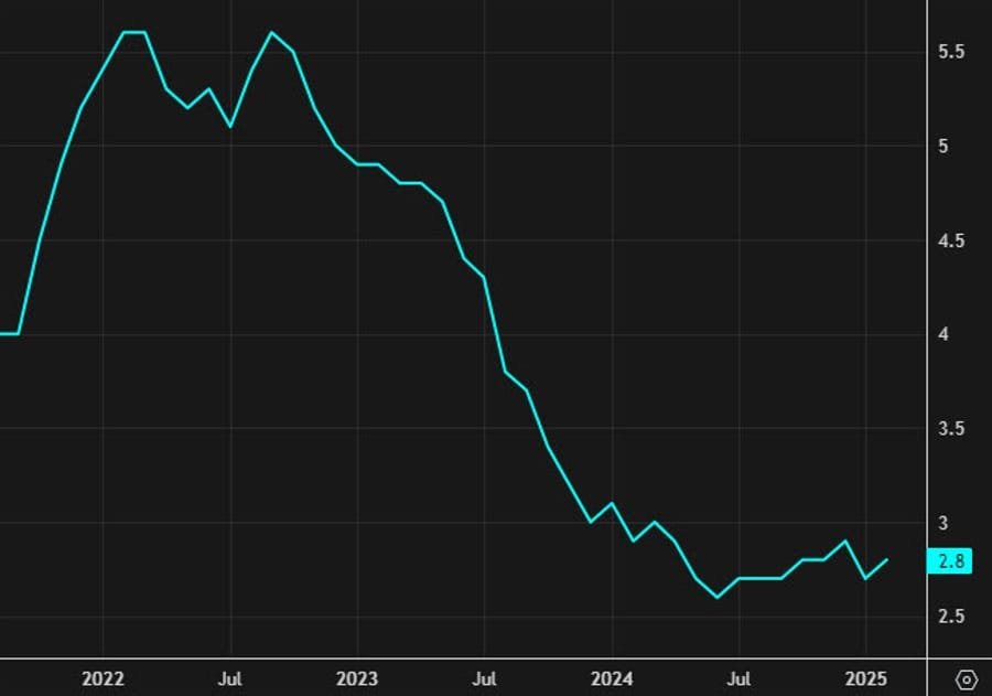 Pricing and cost indicators indicate margin squeeze from ongoing cost pressures. One-year-ahead inflation expectations were little changed at 2.65%.